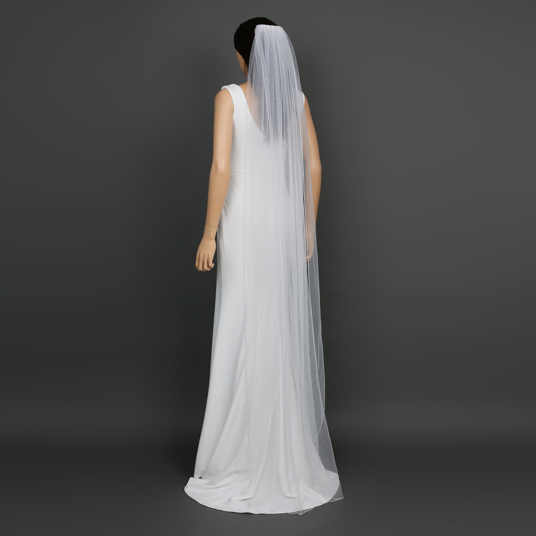 - One tier, soft tulle - Classic pencil edge design - Waltz length 60" or Floor length 72" or Chapel length 90" - 72" width for a refined and elegant drape - Premium flexible metal comb wrapped in matching tulle