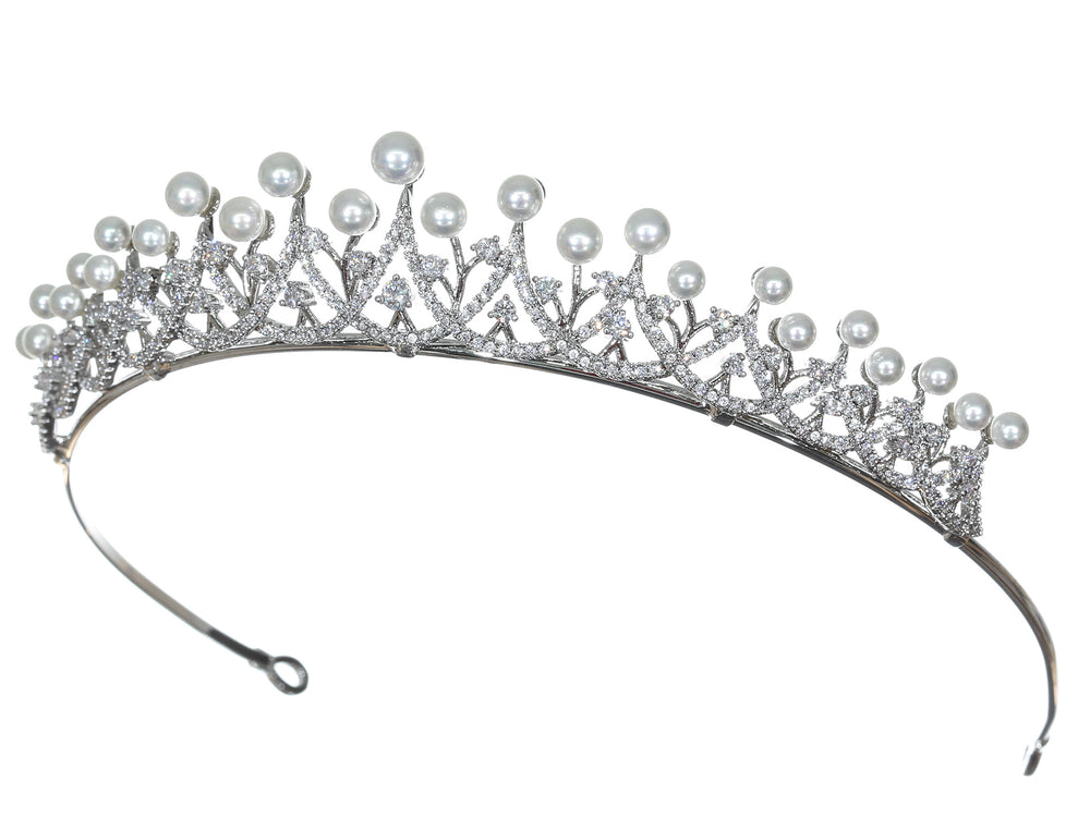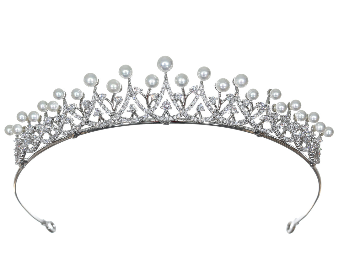 Cubic Zirconium CZ Crystal Pearl Bridal Wedding Tiara CR265