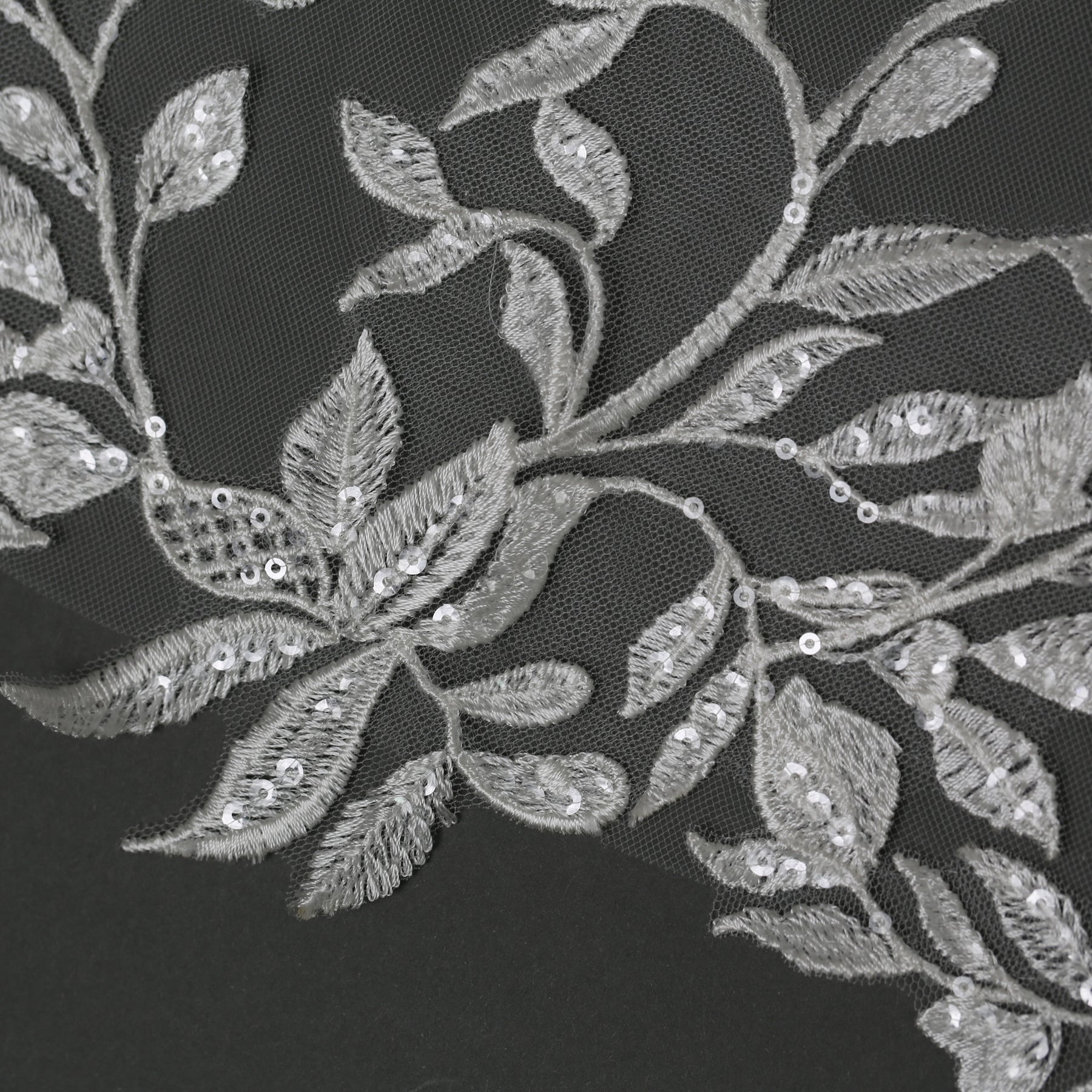 Detail of FS6228 floral lace veil with bead and sequin embellishments.