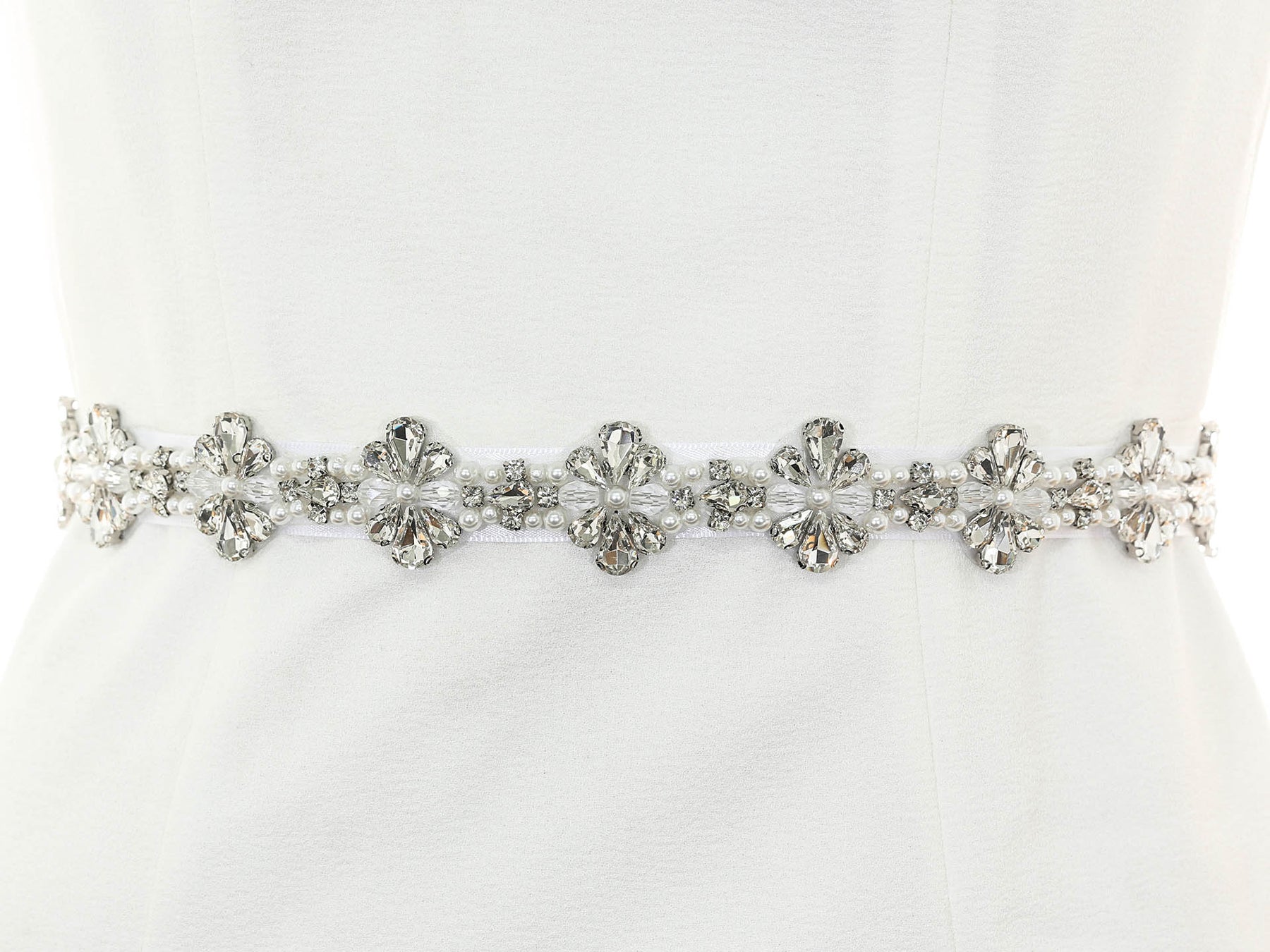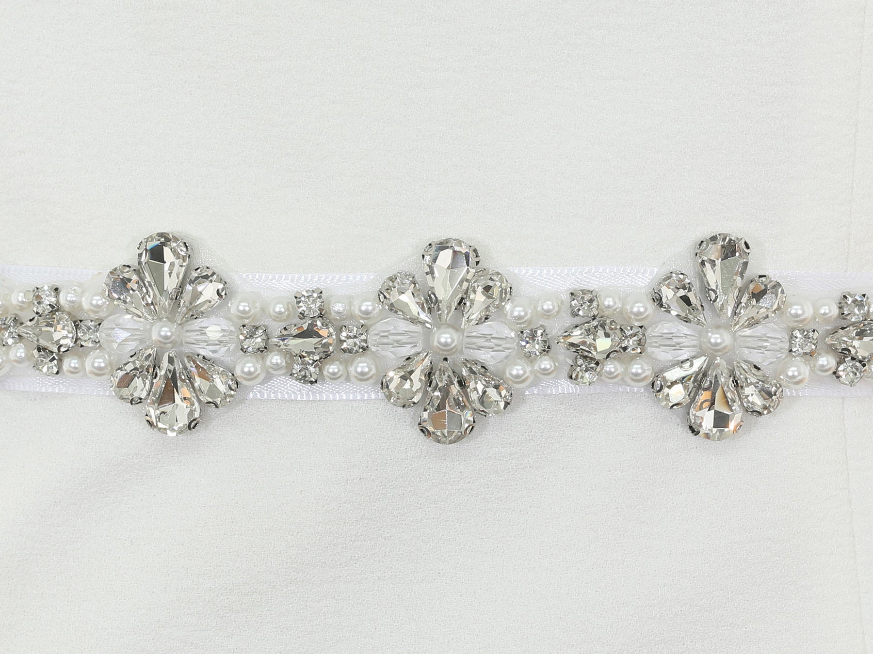 S1008 Bridal Sash Belt with Rhinestones and Pearls - Wholesale | Farinosa Bridal