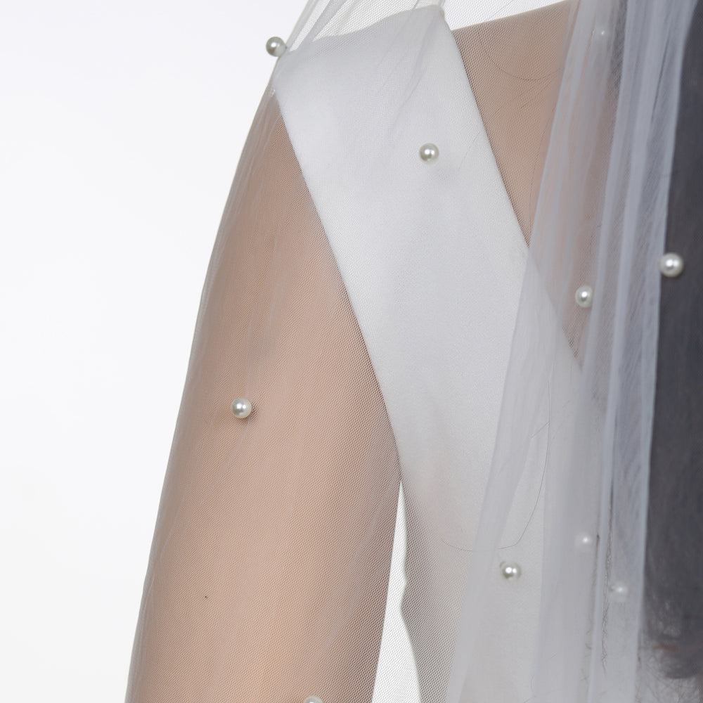 Scattered Pearls Bridal Veil, Soft Tulle, Elbow, Fingertip Length FS6357