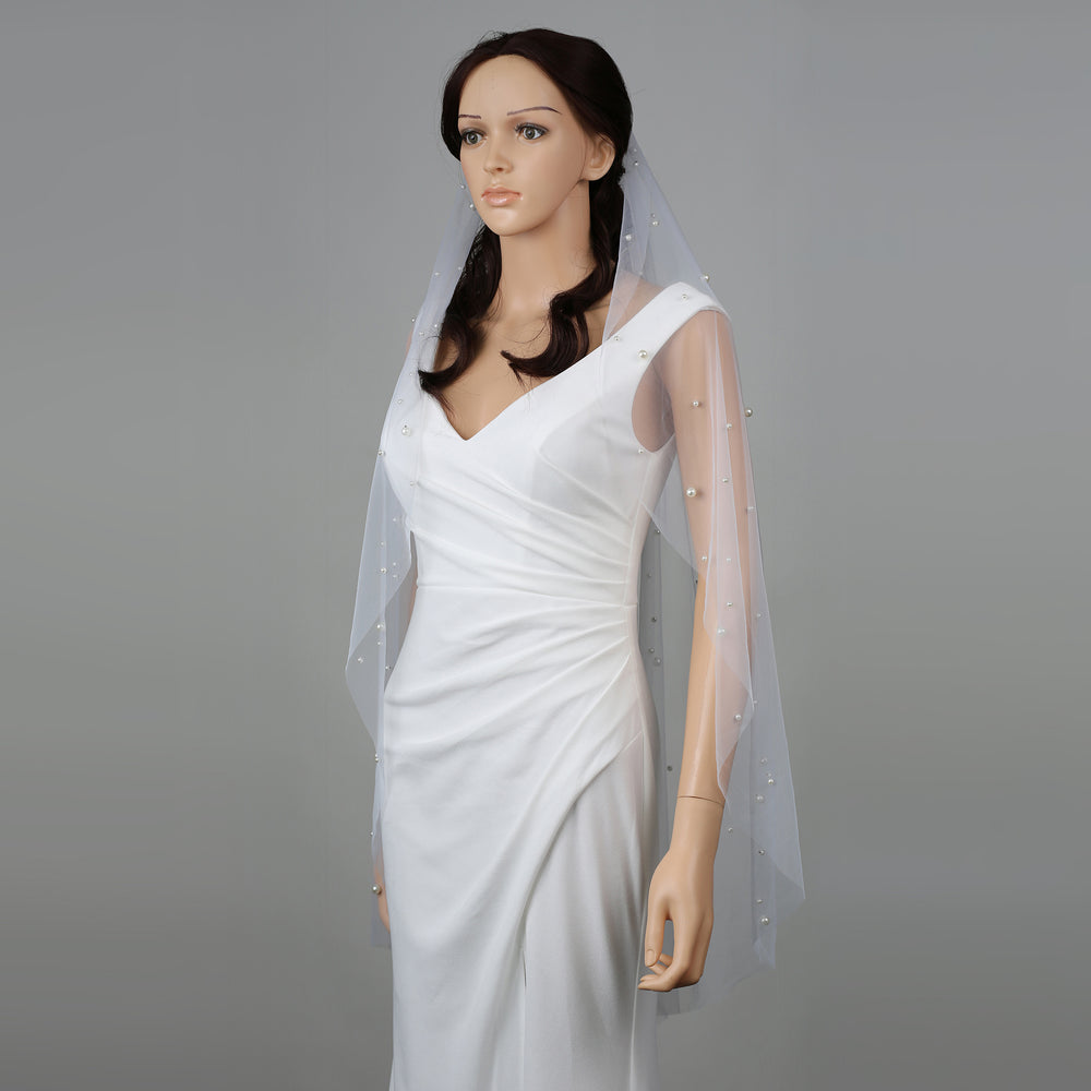 Scattered Pearls Bridal Veil, Soft Tulle, Fingertip Length FS6355