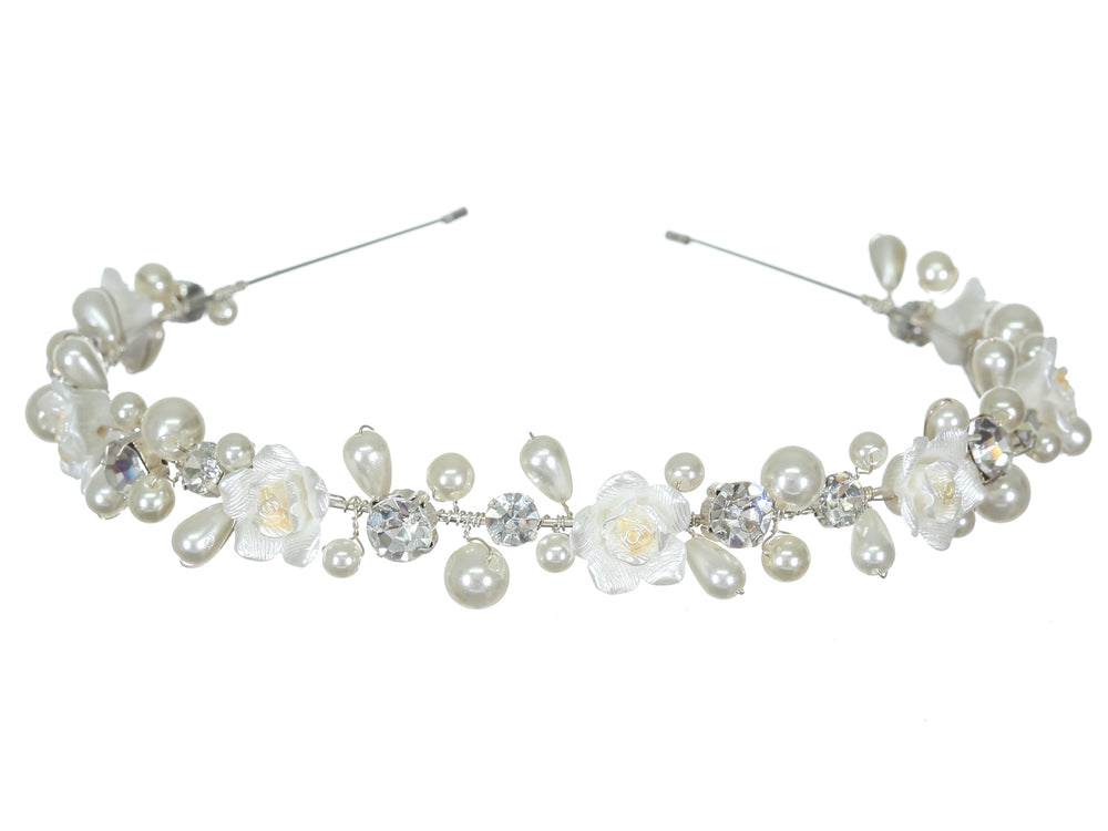 Handmade Floral Pearl Rhinestone Silver Bridal Wedding Tiara Headband CR218