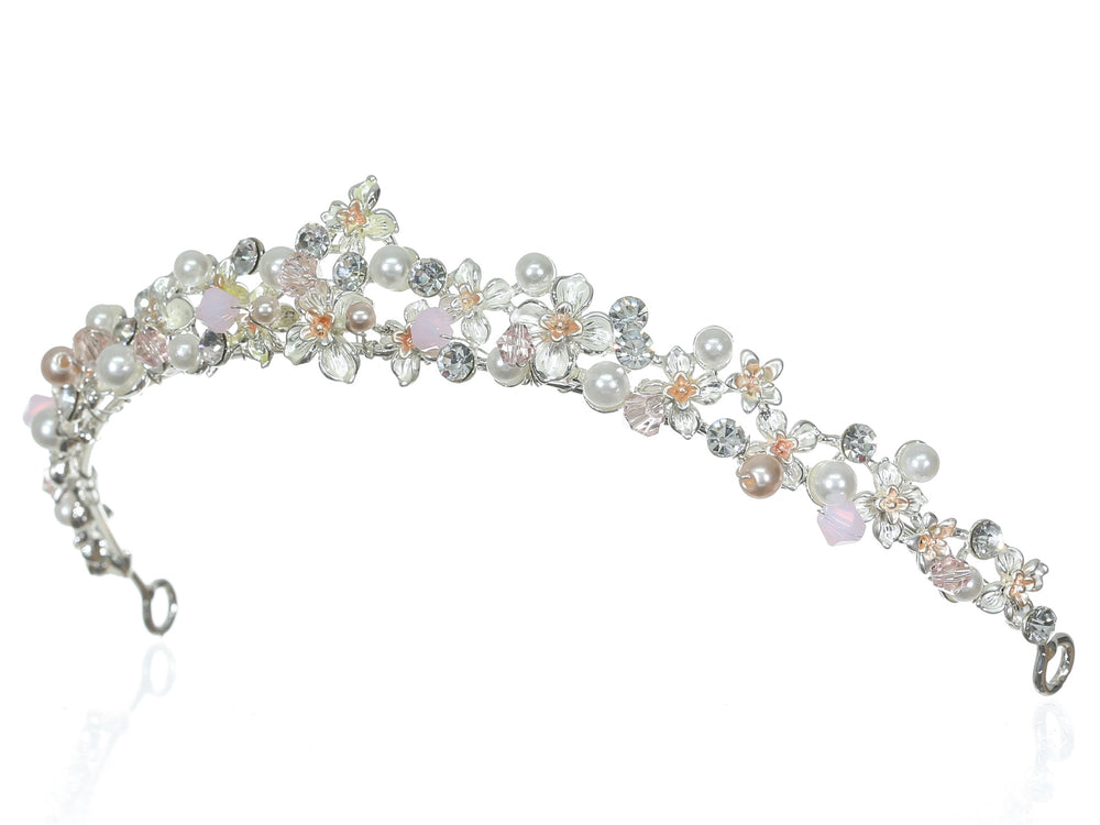 Floral Crystal Pearl Rhinestone Silver Bridal Wedding Tiara CR214