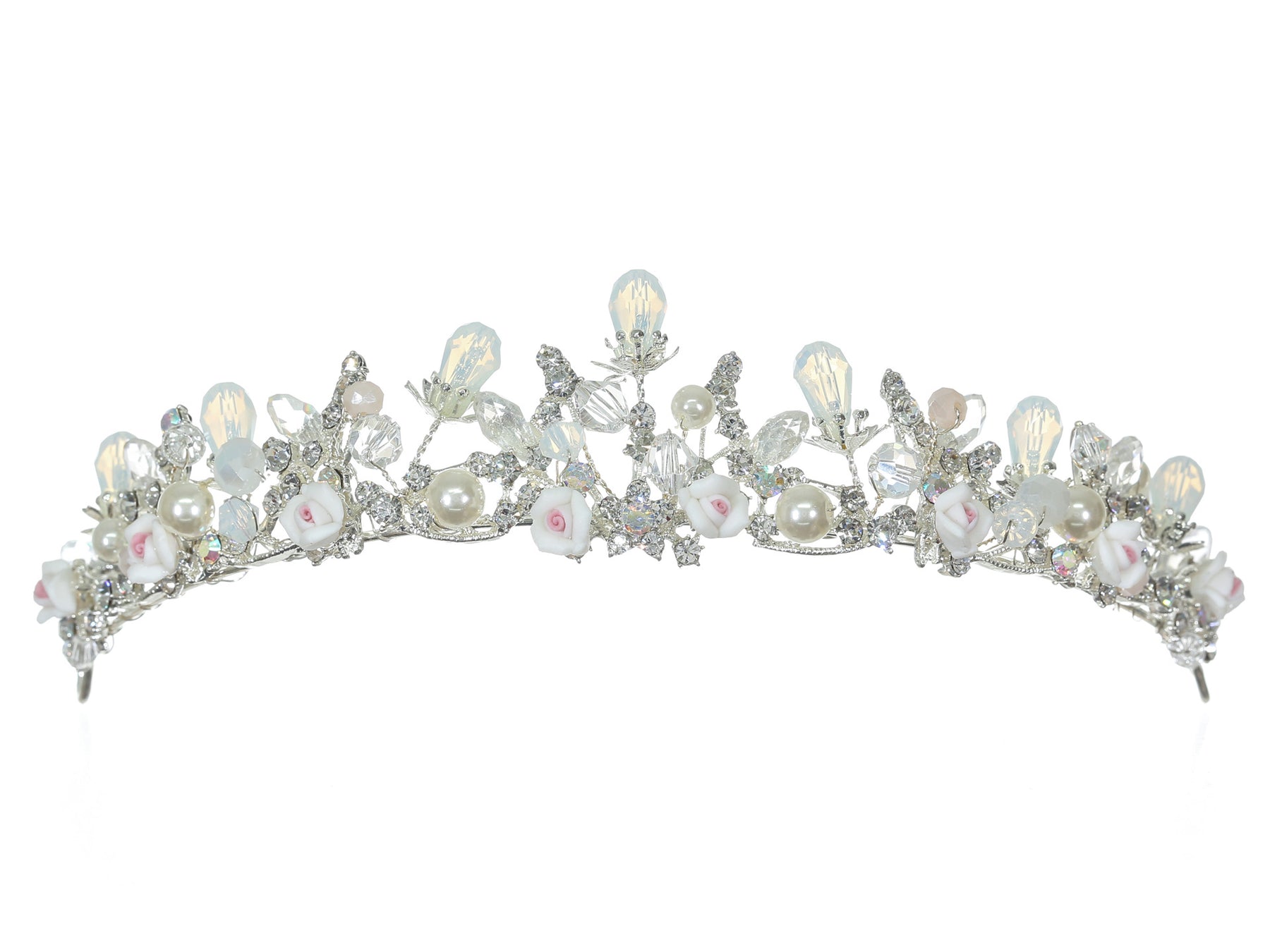 Floral Crystal Pearl Rhinestone Silver Bridal Wedding Tiara CR246